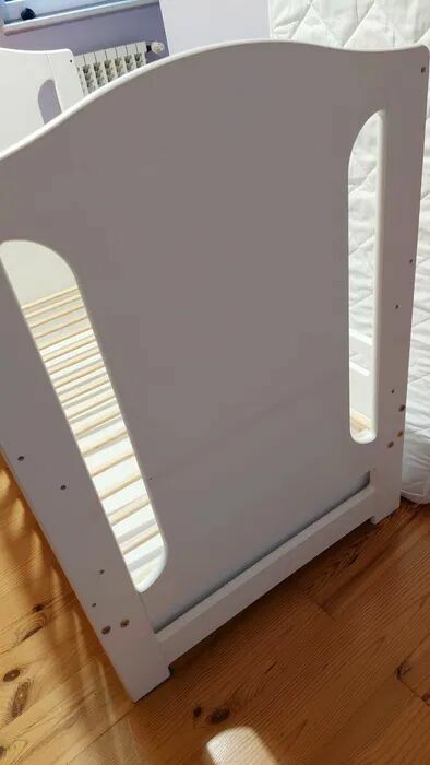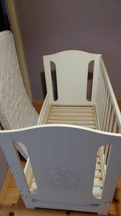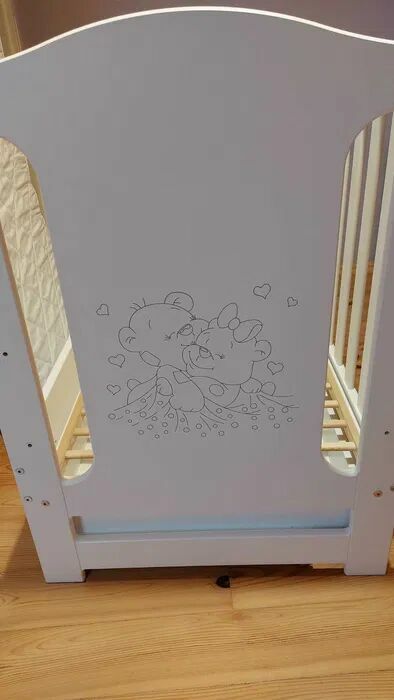 Witam, do sprzedania mam używane łóżeczko 60x120, widoczne ślady użytkowania: lekko starty lakier od wiszącej kołysanki, ktore dziecko trącało i odciśnięty inny mebel na tylnej krawędzi. Zabezpieczenia przeciw ugryzieniom oraz szuflada na szynach, zapraszam!Joanna